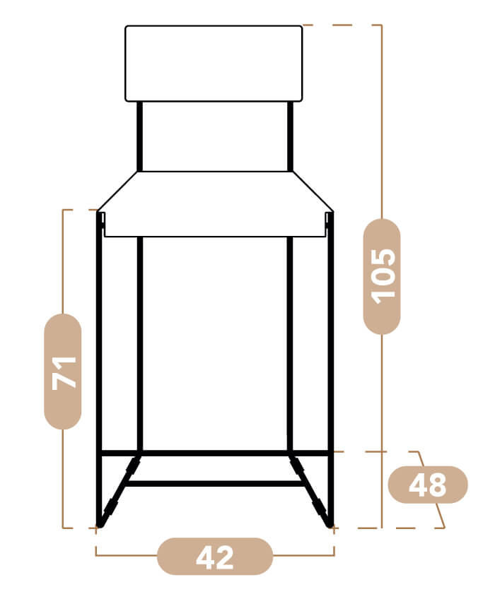 La estructura de hierro aporta robustez y estabilidad, mientras que los plásticos antideslizantes en la base aseguran firmeza y protegen el suelo. Gracias a su formato más alto y esbelto, esta versión resulta funcional y visualmente liviana, perfecta para cocinas, barras y áreas sociales.