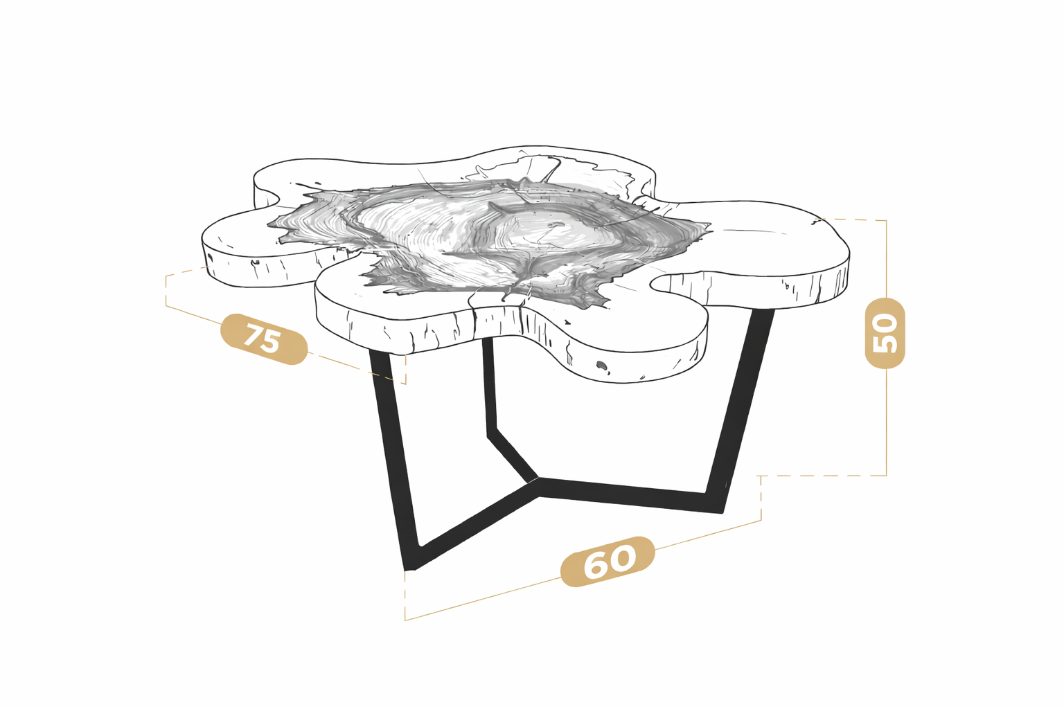 Disponible en dos alturas (40 y 50 cm), esta mesa se adapta fácilmente a distintos espacios y usos: como mesa de centro en el living o como pieza decorativa protagonista en cualquier ambiente.