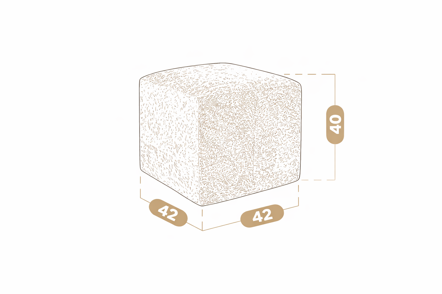 Puff tapizado en cuero lanar rasado, que combina elegancia, suavidad y funcionalidad en un diseño cuadrado y versátil.