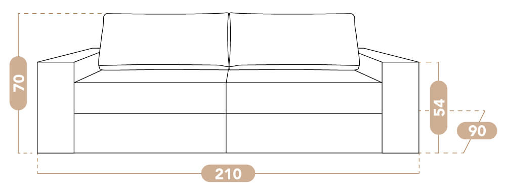 Medidas: 210 cm de ancho × 70 cm de alto × 90 cm de profundidad